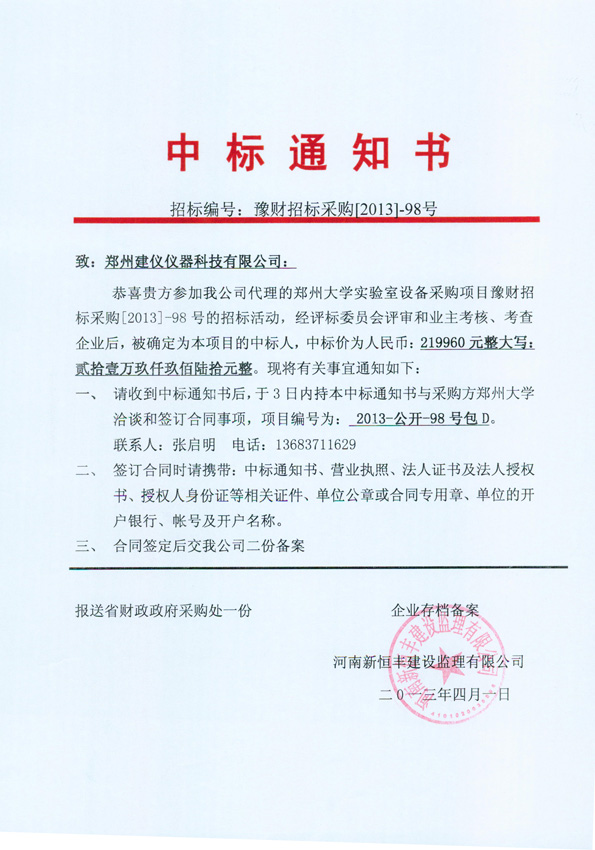 豫財(cái)招標(biāo)采購[2013]-98號(hào)