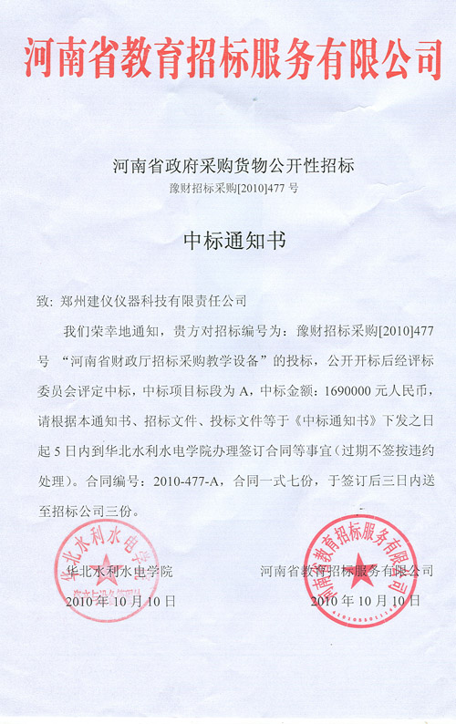豫財(cái)招標(biāo)采購(gòu)(2010)477號(hào)