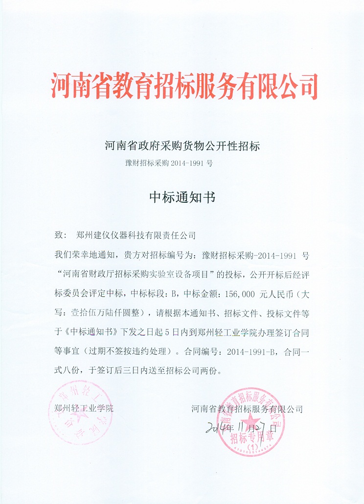 2014-1991中標(biāo)通知書(shū)