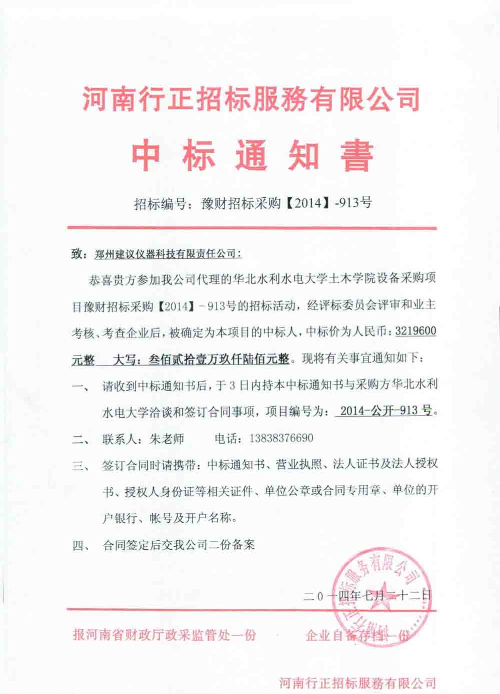 豫財招標(biāo)采購2014-913號