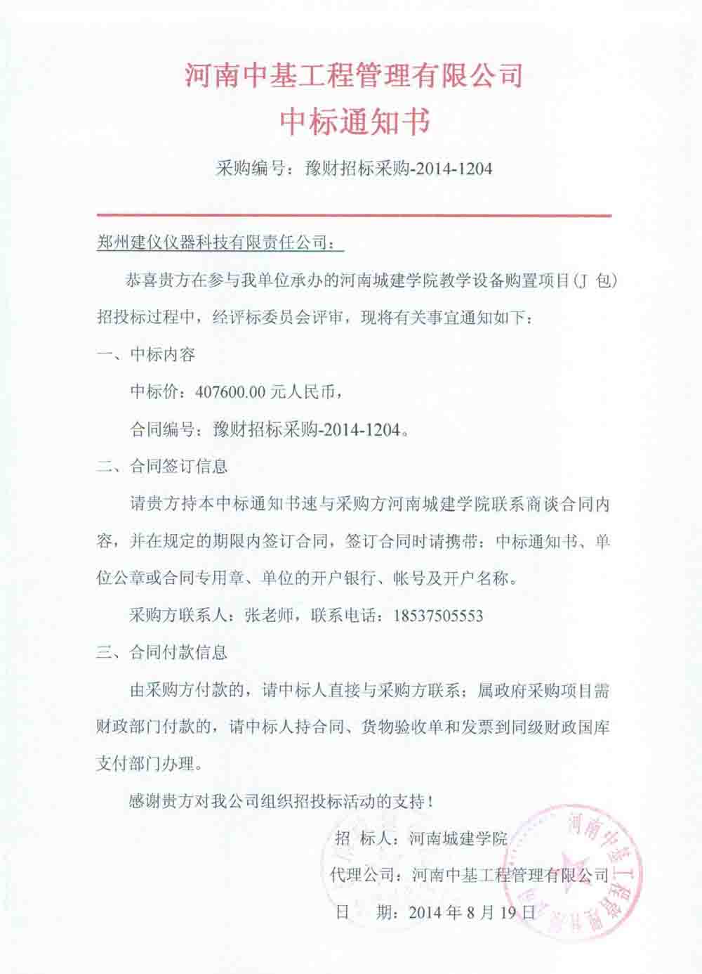 豫財(cái)招標(biāo)采購2014-1204號J包