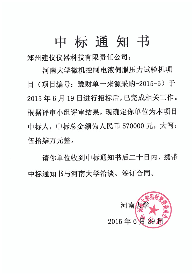 上一篇:河南質(zhì)量工程職業(yè)技術(shù)學(xué)院PZC2014-9588Ag-46236(一標(biāo)段)中標(biāo)通知書