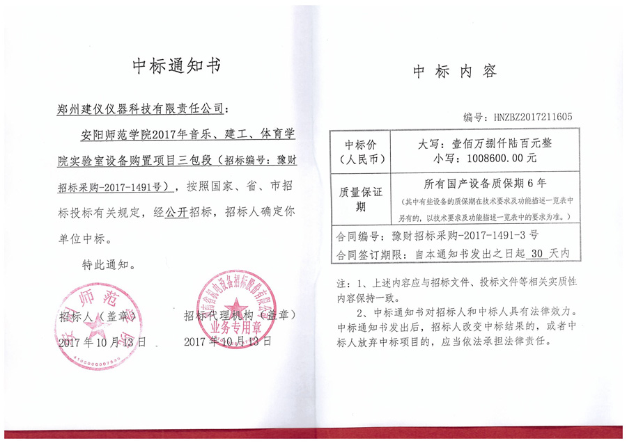 安陽師范學院豫財招標采購-2017-1491