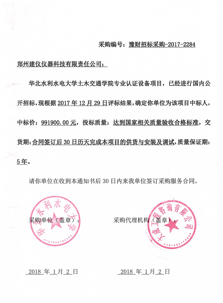 華北水利水電大學(xué)土木交通學(xué)院豫財招標(biāo)采購-2017-2284